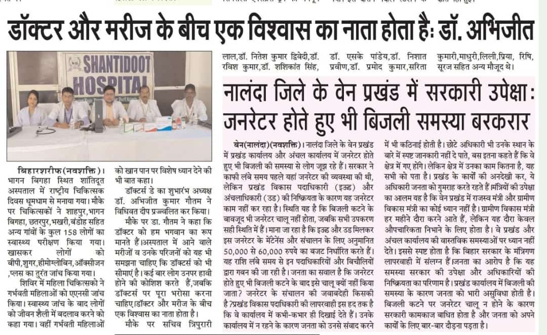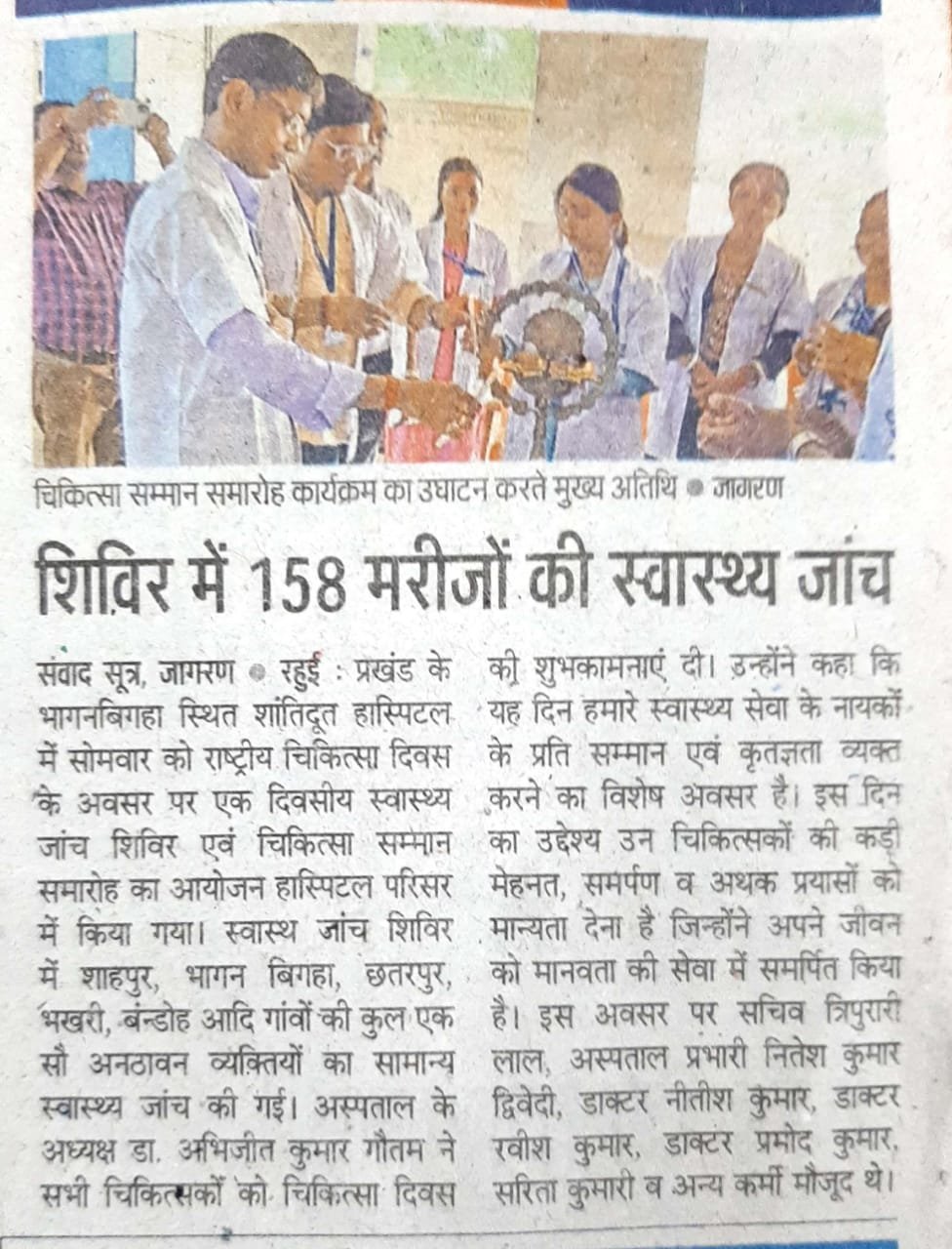 On the occasion of Doctor's Day, Shantidoot Hospital organized a free health camp. 158 patients benefited from this.